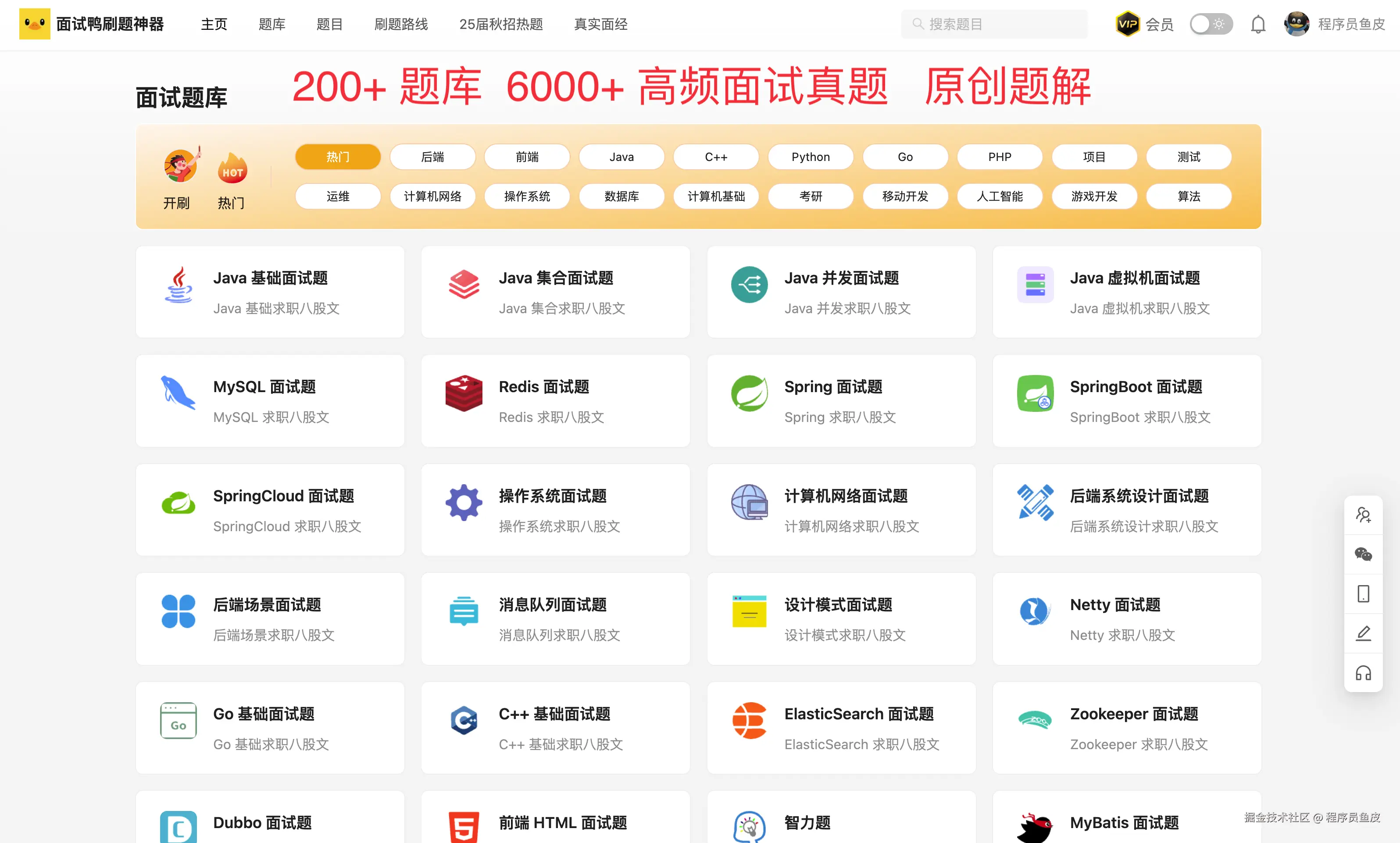 大家好,我是程序员鱼皮。昨天逮到一个爬取我们 程序员面试刷题网站 - 面试鸭 的题目的用户,小伙子可能自以为很聪明,实际上手法非常拙劣!我一分钟不到就把他揪出来了。