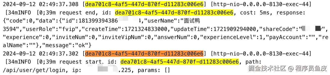 还有一种方法,他想要获取到题目信息,一定要先登录,在日志中搜索该 IP 请求 “登录接口” 或者 “获取登录用户信息接口” 的记录,查看接口的返回值,就知道是哪个用户了。