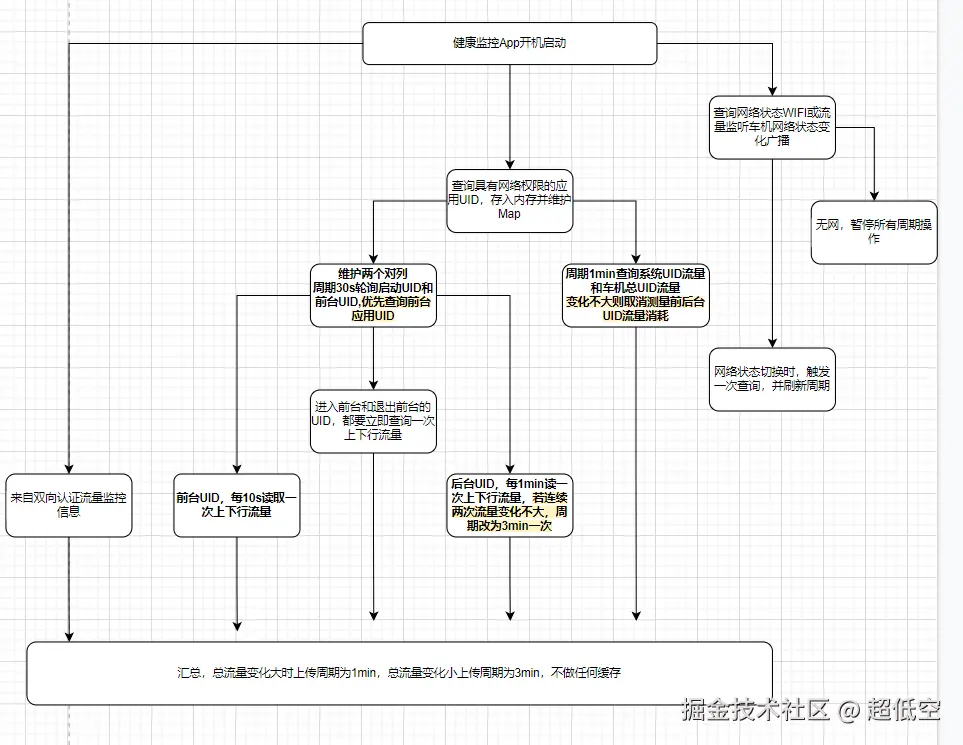 - 健康监控流量采集中的各周期和流量变化阈值的设定,还需要写个demo装入实车,收集一些具体使用情况后设计。且需要采用可配置的参数。