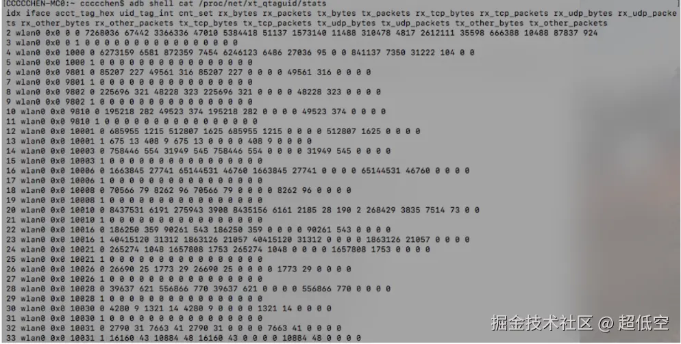 - /proc/uid_stat/uid/tcp_rcv:单个应用的流量统计信息