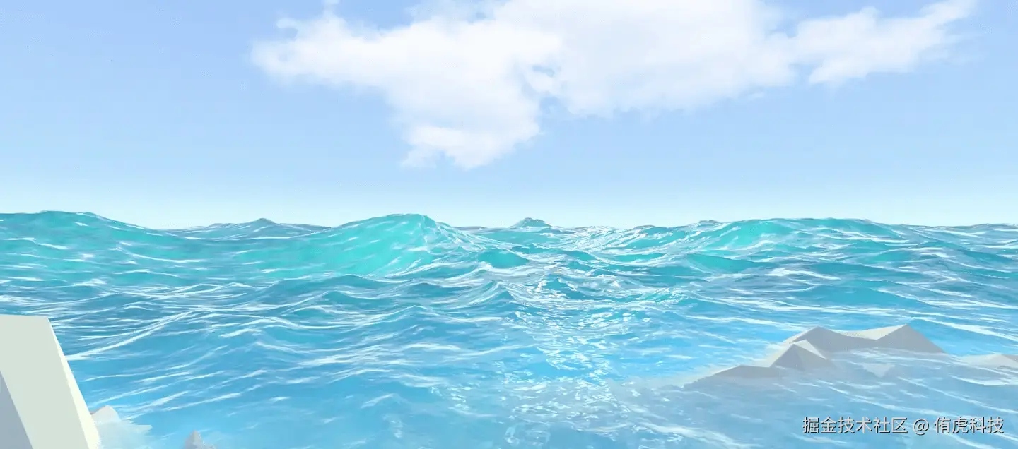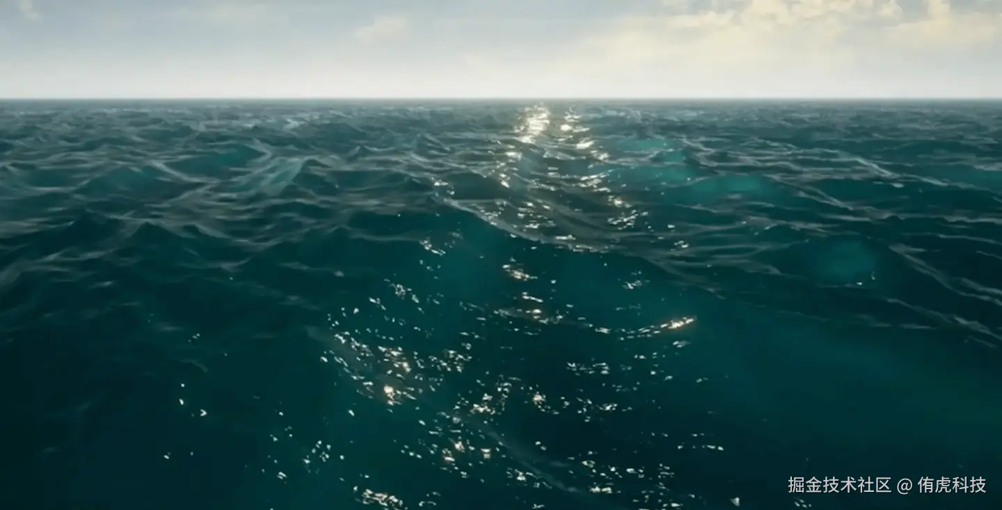 波形渲染性能开销大不大不是一件绝对的事情,因为我们有许多水体波形实现的方法,但大体上波形渲染效果的真实度与性能开销成正比。如果你想要影视级别的水波肯定没有办法实时渲染实现,当然我们也可以用预渲染的方法实现真实细致的水波,但重复、死板的感觉不可避免。水波渲染本质是一种物理模拟,我们可以很容易让一个平面模型动起来,困难点在于如何模拟水面真实的物理波动,所以平衡效果与性能是解决波形模拟的关键。