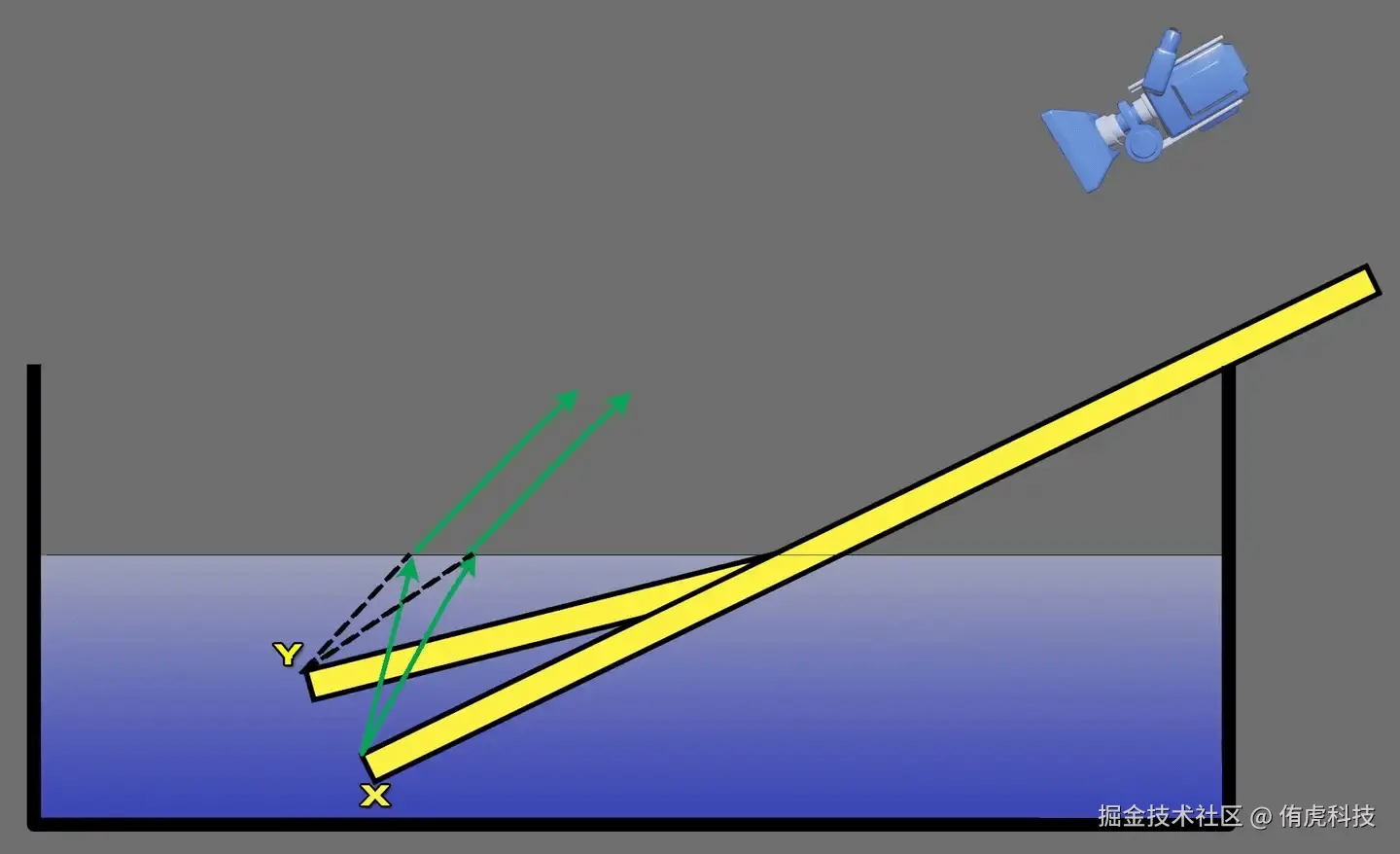 水体深度颜色变化主要由光线体积散射衰减造成,抛开各种物理原理去理解其逻辑就是:水体深度对水体颜色的影响。所以不论使用什么方案实现该效果,最核心的功能是获得水的深度并根据深度匹配水的颜色。下面我们将分享基于预积分和指数函数两种方案实现该效果。