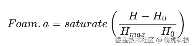 下面将分享比较主流的Saturate高度方案的实现,其思路是将一个制作好的白沫纹理在高于某一高度Ho的顶点上进行颜色混合。用于混合的参数计算公式如下: