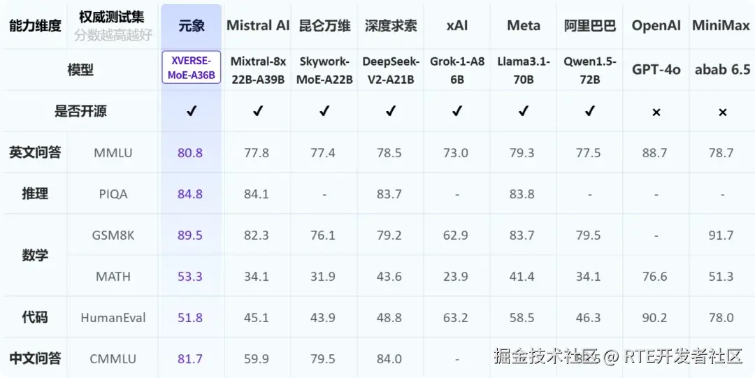 元象 XVERSE 发布中国最大 MoE 开源模型 XVERSE-MoE-A36B。