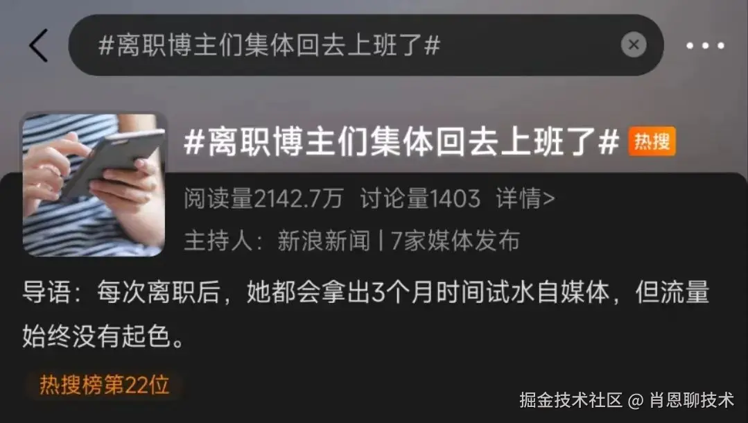 现在开始探索个人IP是不是晚了?这赛道已经是一片红海了,前两年大量出现的离职博主,到如今很多也开始老老实实回去上班了。如果把个人IP当做自己的主业并想快速通过它赚米,那确实难如登天(头部效应很明显,平台可能都不会给新人多少流量)。但如果把打造IP看成一件长期的事,在维持一份基本的工作之外,不急功近利,慢慢打磨内容,降低预期后或许能得到意想不到的收获(但行好事莫问前程?食饼🤡)。