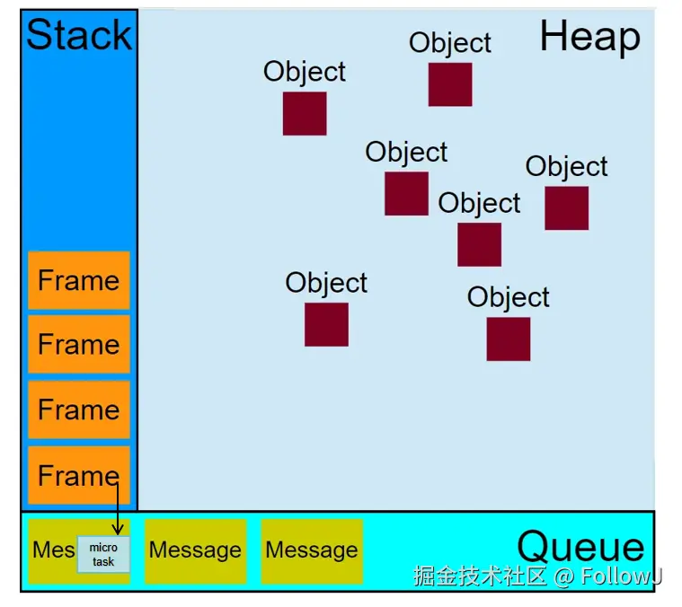 宏任务队列会挨个执行,每个宏任务队列都会有自己的执行环境栈,在执行环境栈中每个函数帧执行的时候,有可能会产生微任务,微任务都会添加到当前宏任务的最后,在这个宏任务执行完成后,立即执行微任务,当所有微任务执行完成之后,才会执行下一个宏任务。