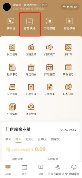 点击APP首页工作台上方的【服务预约】,即可快速为客户新建服务预约: