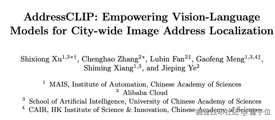 相关论文 AddressCLIP: Empowering Vision-Language Models for City-wide Image Address Localization 已入选顶会 ECCV2024。
