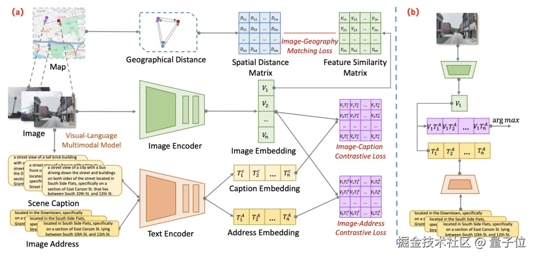具体来说,研究人员们引入了在真实地理环境中距离相近的两个点,其地址与图像特征在特征空间也应当接近,反之亦然这一假设。
