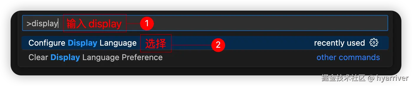 - ctrl+shift+p打开命令面板,输入display,筛选并显示“Configure Display Language”命令。按“Enter”
