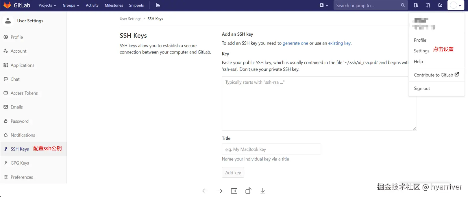 - 将公钥添加到gitlab