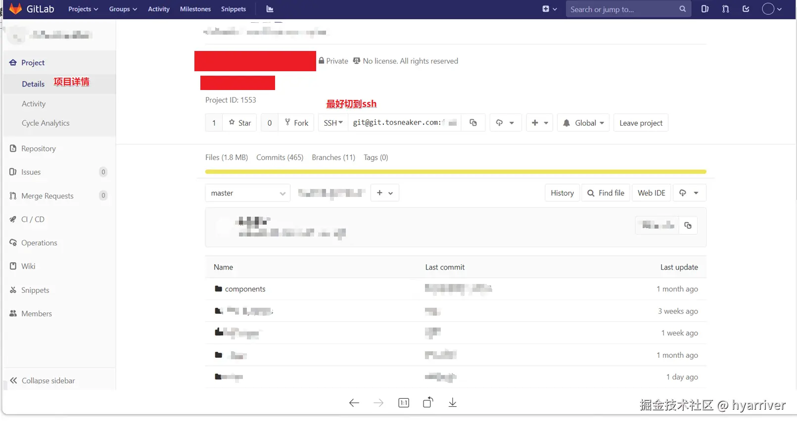 - 进入自己负责的项目, 仓库地址切换到ssh