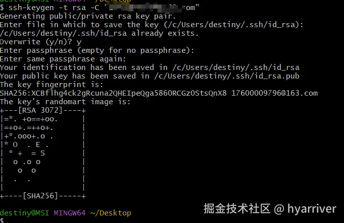- 获取公钥C:\Users\destiny(自己的用户).ssh