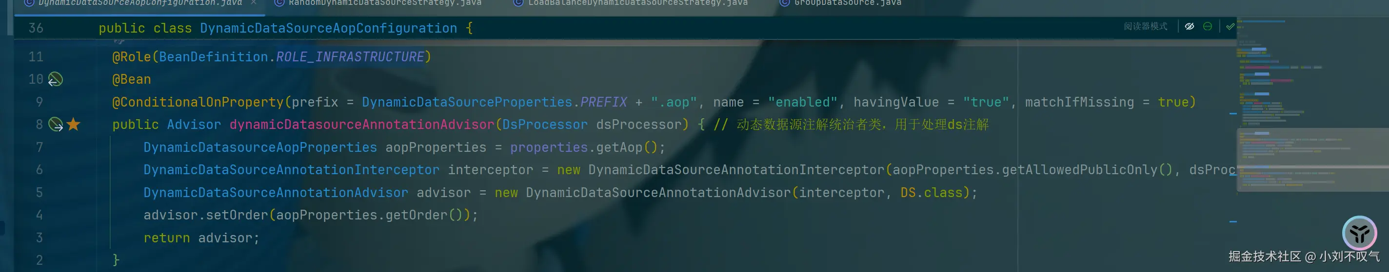 DynamicDataSourceAopConfiguration:aop配置类,用于注册aop相关的通知者对象,用于支持@DS和@DSTransactional注解