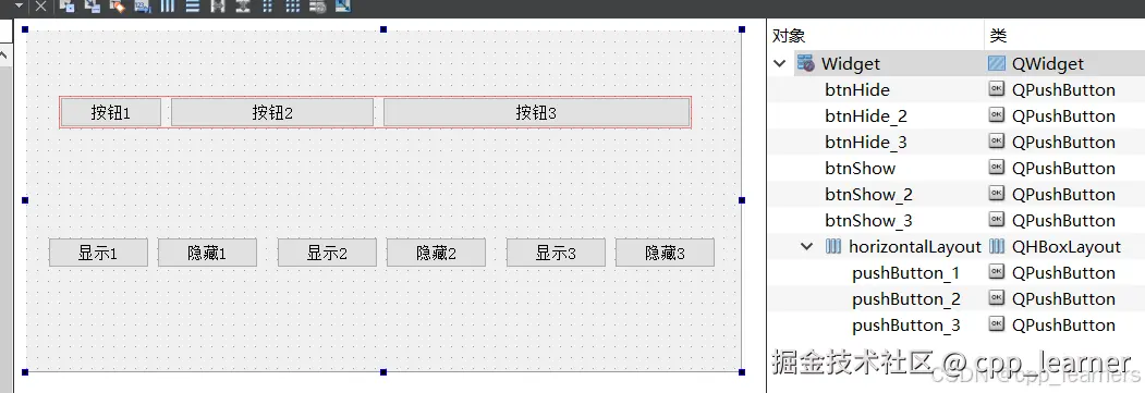 pList.append(btn); // 添加到链表,用于隐藏部件按钮