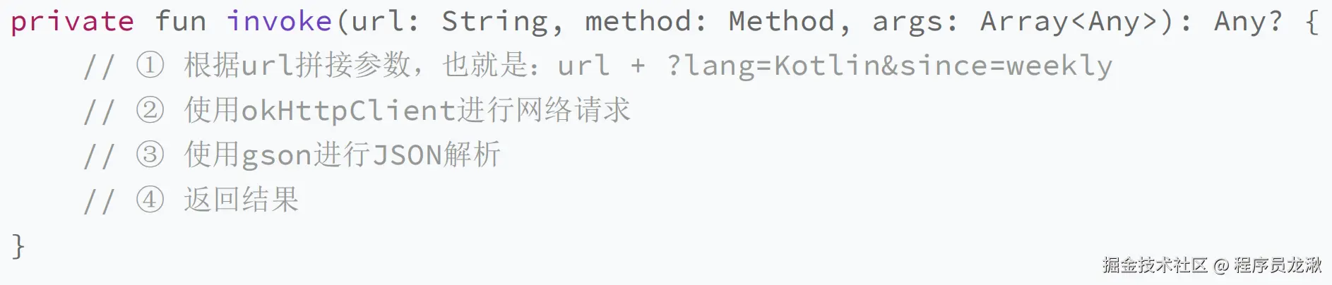- 注释③,这里是取出注解当中的值“lang”,以及参数当中对应的值“Kotlin”进行拼接,URL 第