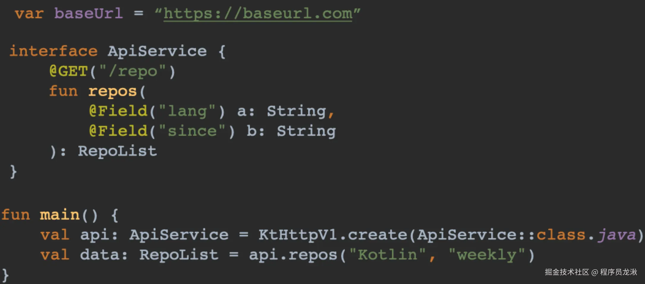 在这个方法当中,我们需要读取 method 当中的 GET 注解,解析出它的值,然后与 baseURL 拼接。这里我们完全可以借助 Kotlin 的标准库函数来实现
