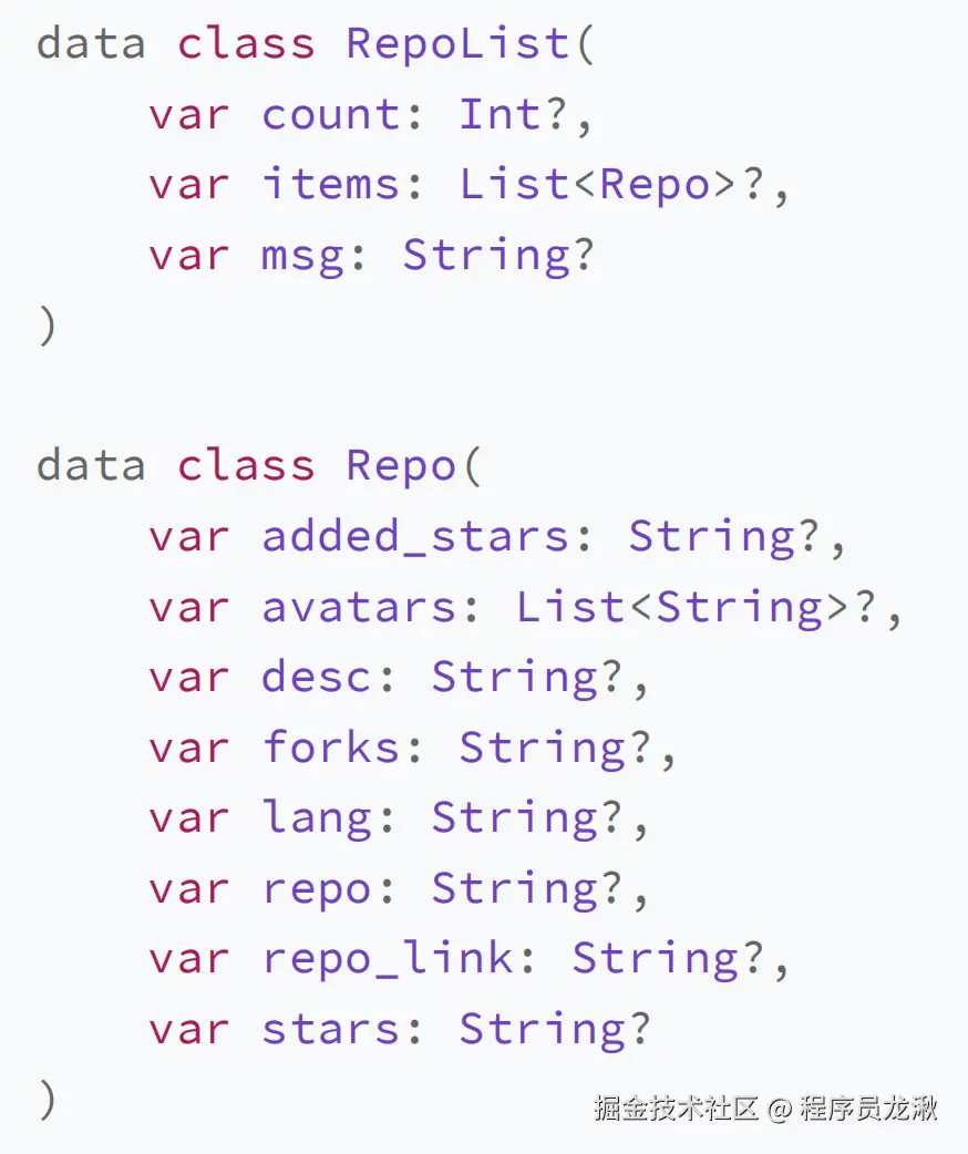 lang、since,还取出了 repos() 方法的返回值 RepoList,用于 JSON 数据的解析。