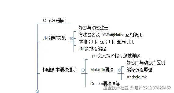 1.首先需要学习的是C与C++的语言基础、JNI编程、构建脚本语法。