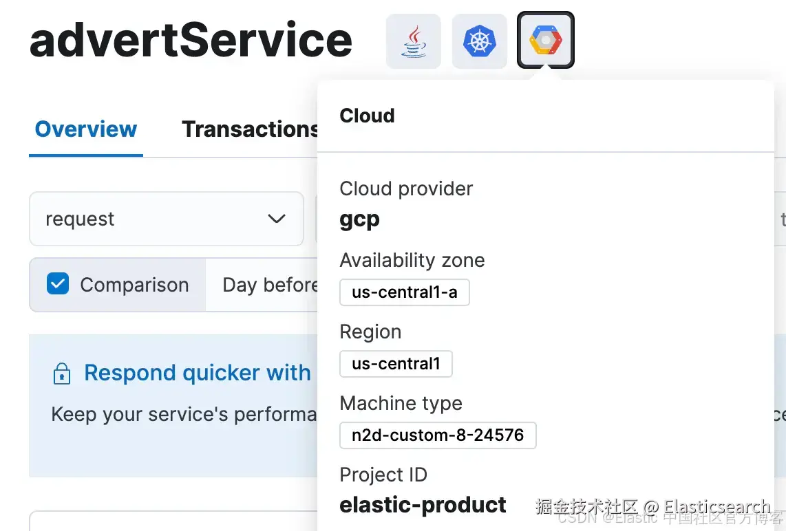 为了满足这一需求,OTel Java 代理的 Elastic 发行版包含内置的服务和云资源自动检测器,特别是针对 AWS 和 GCP,这些检测器源自 OpenTelemetry Java Contrib 存储库。此功能默认启用,可增强可观察性并简化跨各种云平台的服务管理,使其成为任何基于云的部署的关键资产。