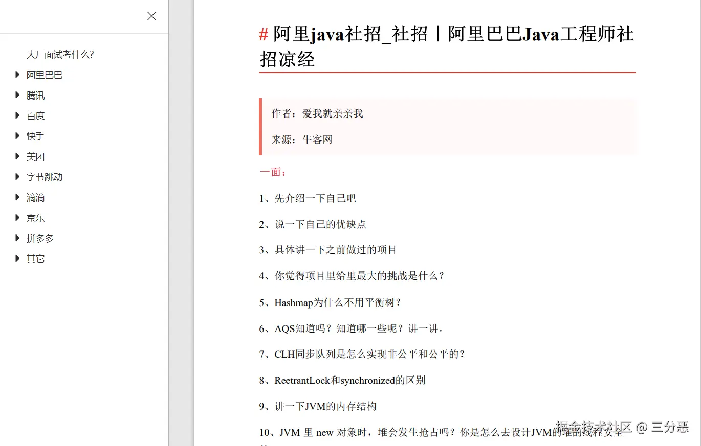 - 面经分享:在岗位的JD里面,通常只会留下岗位的概要要求,具体面试考什么,可以阅读前辈们的面试经验分享。通过这些面经,可以了解他们是如何准备的,遇到过哪些问题,以及面试官常问的问题。