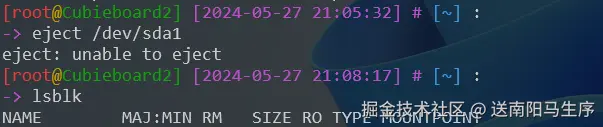 - 4)根据官方《安装驱动方法》文档提示,使用 eject /dev/sda1 弹出 U 盘,发现没有该命令,尝试安装: