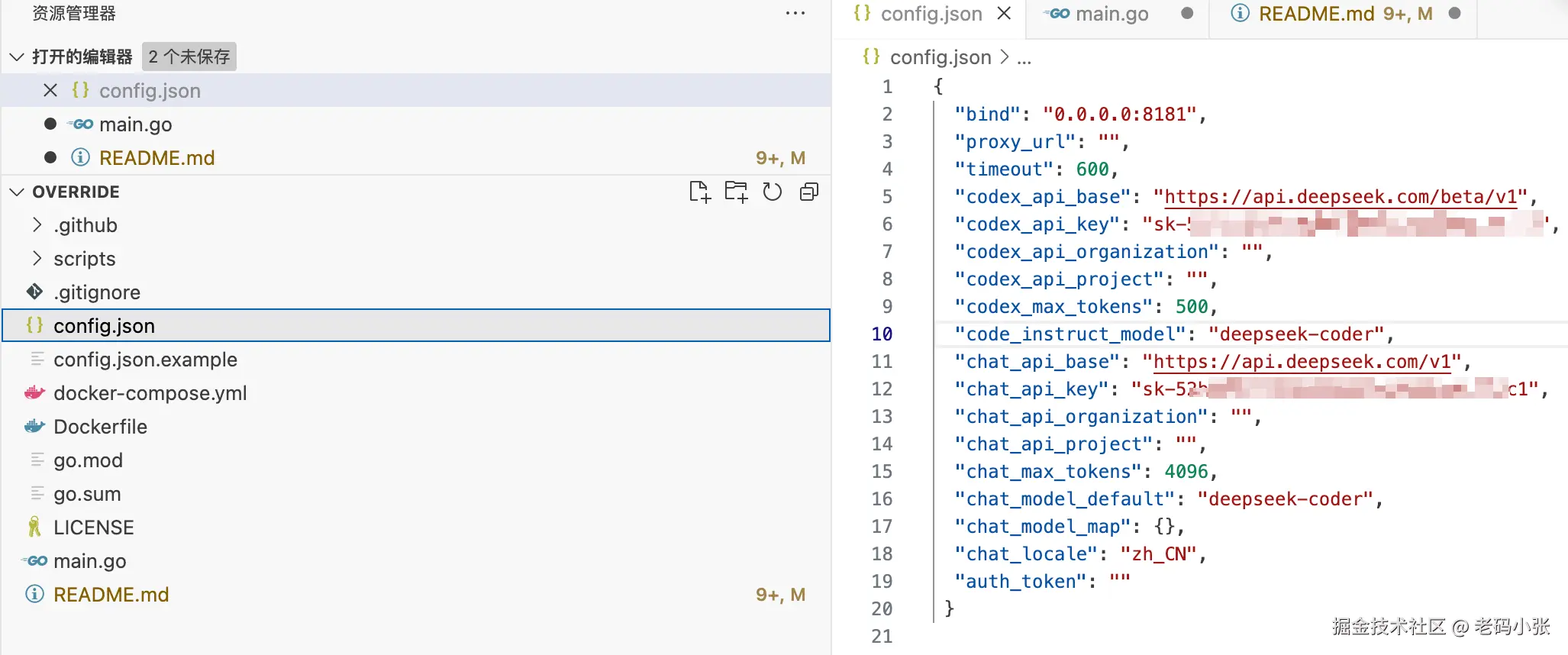 config.json 里面配置自己的deepseek 的 base url 和 API key