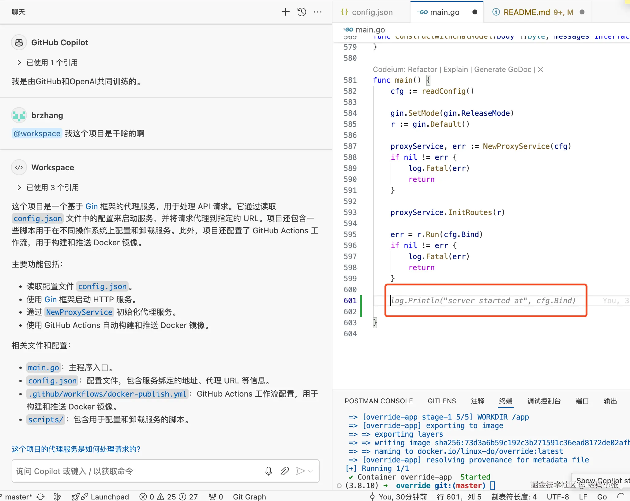 可能听起来有点复杂,但别担心,步骤非常简单。原理就是,只需启动一个中间层服务,让 GitHub Copilot 的所有请求自动转发到 deepseek 的 API 上,你就可以开始享受这个“花小钱办大事”的过程了!