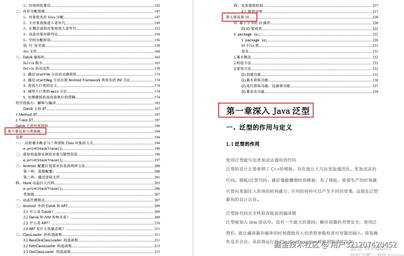 我花了将近半个月时间将:深入 Java 泛型.、注解深入浅出、并发编程.、数据传输与序列化、Java 虚拟机原理、反射与类加载、高效 IO、Kotlin项目实战等等Android架构师筑基必备技能整合成了一套系统知识笔记PDF,相信看完这份文档,你将会对这些Android架构师筑基必备技能有着更深入、更系统的理解。