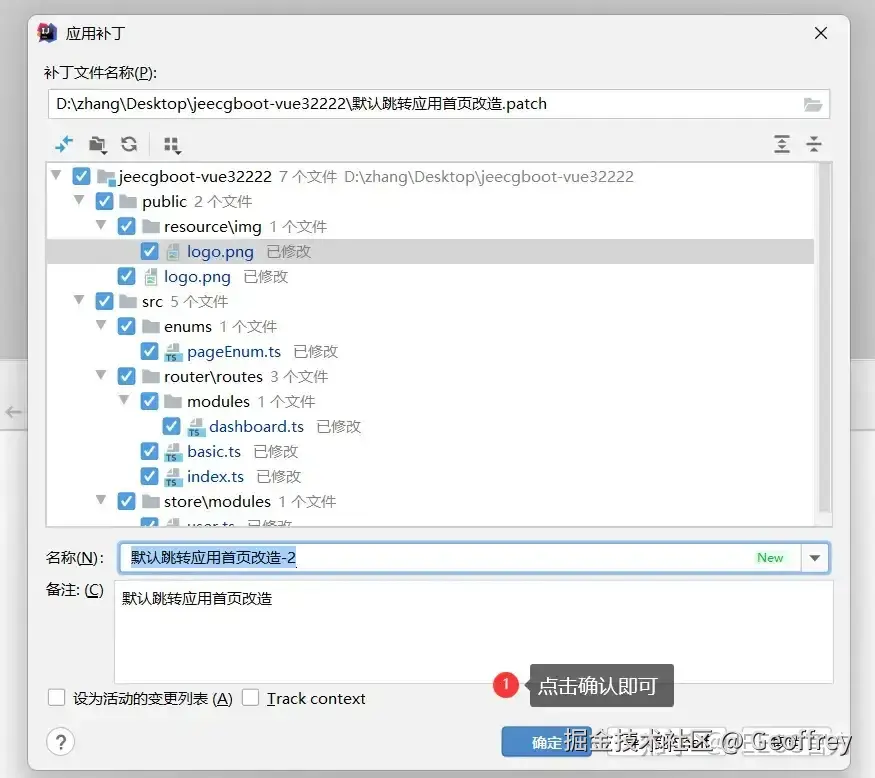 先打开新项目,通过右上角的 VCS 的应用补丁按钮导入补丁