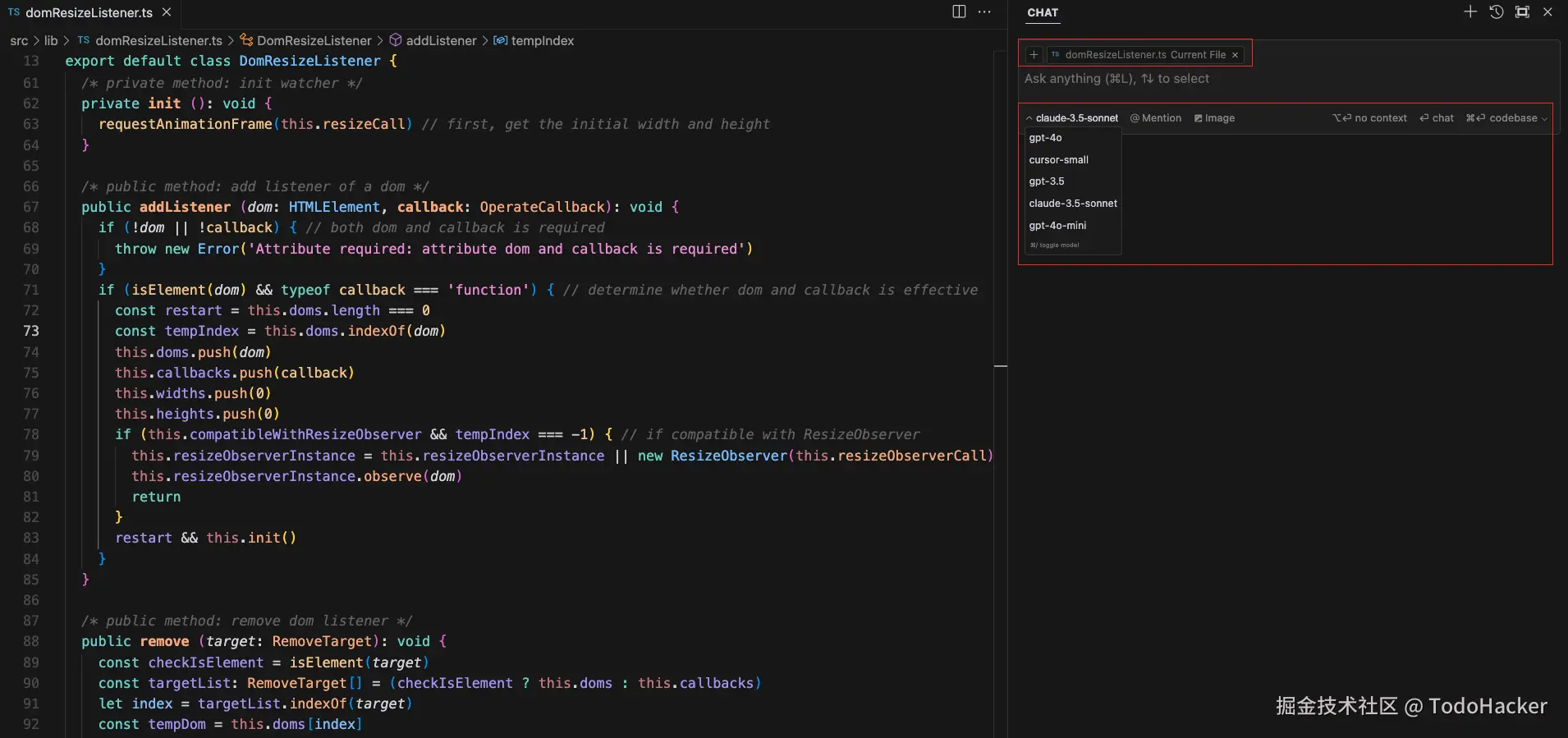 Cursor Composer 是整个产品中最接近程序员的功能。结合聊天助手的能力,你可以让它根据你的指示进行代码操作,包括更改代码逻辑、修复 lint 报错,甚至创建或删除文件等。