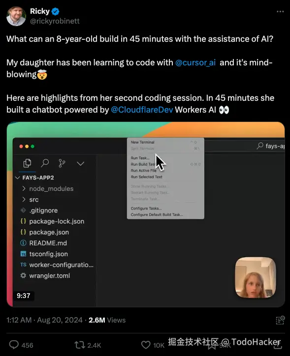 8岁的小女孩利用 Cursor 45 分钟实现了一个聊天机器人