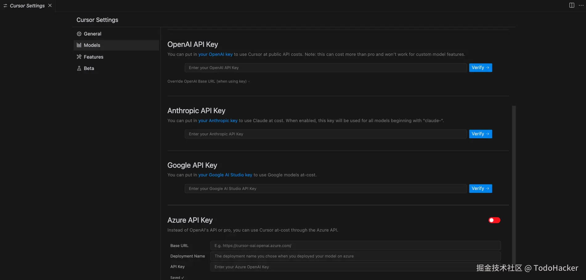 Cursor Custom API Keys —— 自定义各 AI 平台的 API Keys 以自费获取 AI 能力
