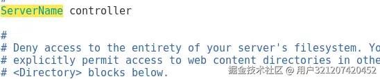 1、编辑/etc/httpd/conf/httpd.conf 文件,配置ServerName 选项为控制节点: