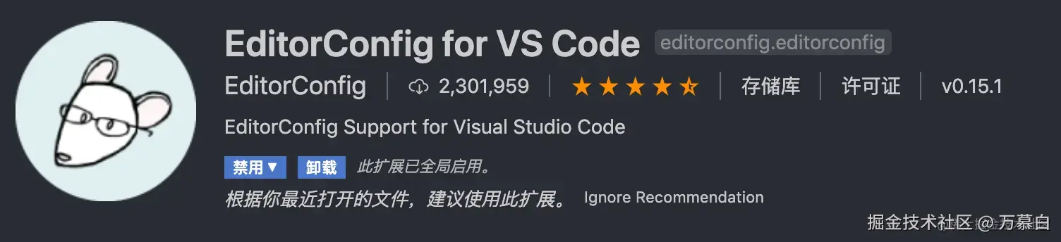 .editorconfig 是跨编辑器维护一致编码风格的配置文件,有的编辑器会默认集成读取该配置文件的功能,但是 vscode 需要安装相应的扩展 EditorConfig For vs Code 。