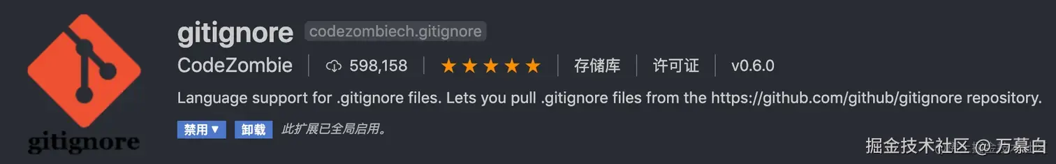 那么这些系统或编辑器自动生成的文件,但是又不被我们很容易查知的该怎么办呢?使用 vscode 的 gitignore 插件,下载安装该插件之后, ctrl+shift+p 召唤命令面板,输入 Add gitignore 命令,即可在输入框输入系统或编辑器名字,来自动添加需要忽略的文件或文件夹至 .gitignore 中。