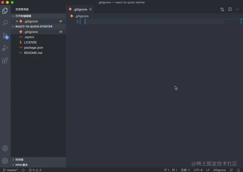 你只要上 github 找任何一个项目,点进去之后往下拉一点,看到的对项目的直接说明就是 README.md 所呈现的,这个文件无比重要,一个好的开源项目必须!必须!必须!有一个简明且美观的 README.md ,不过文章写到现在为止,我们的这个脚手架并没有任何实质性的内容,之后完全配置完之后,会再好好书写一下。