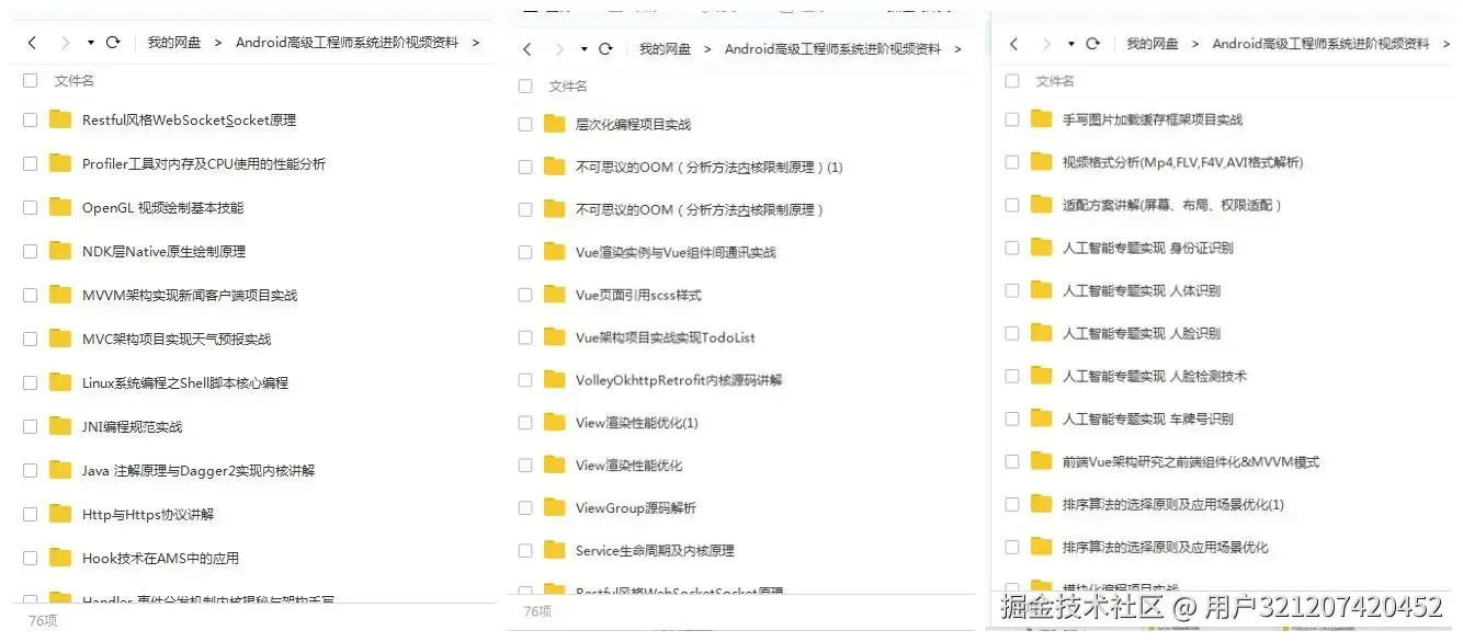 下面是部分资料截图,诚意满满:特别适合有开发经验的Android程序员们学习。