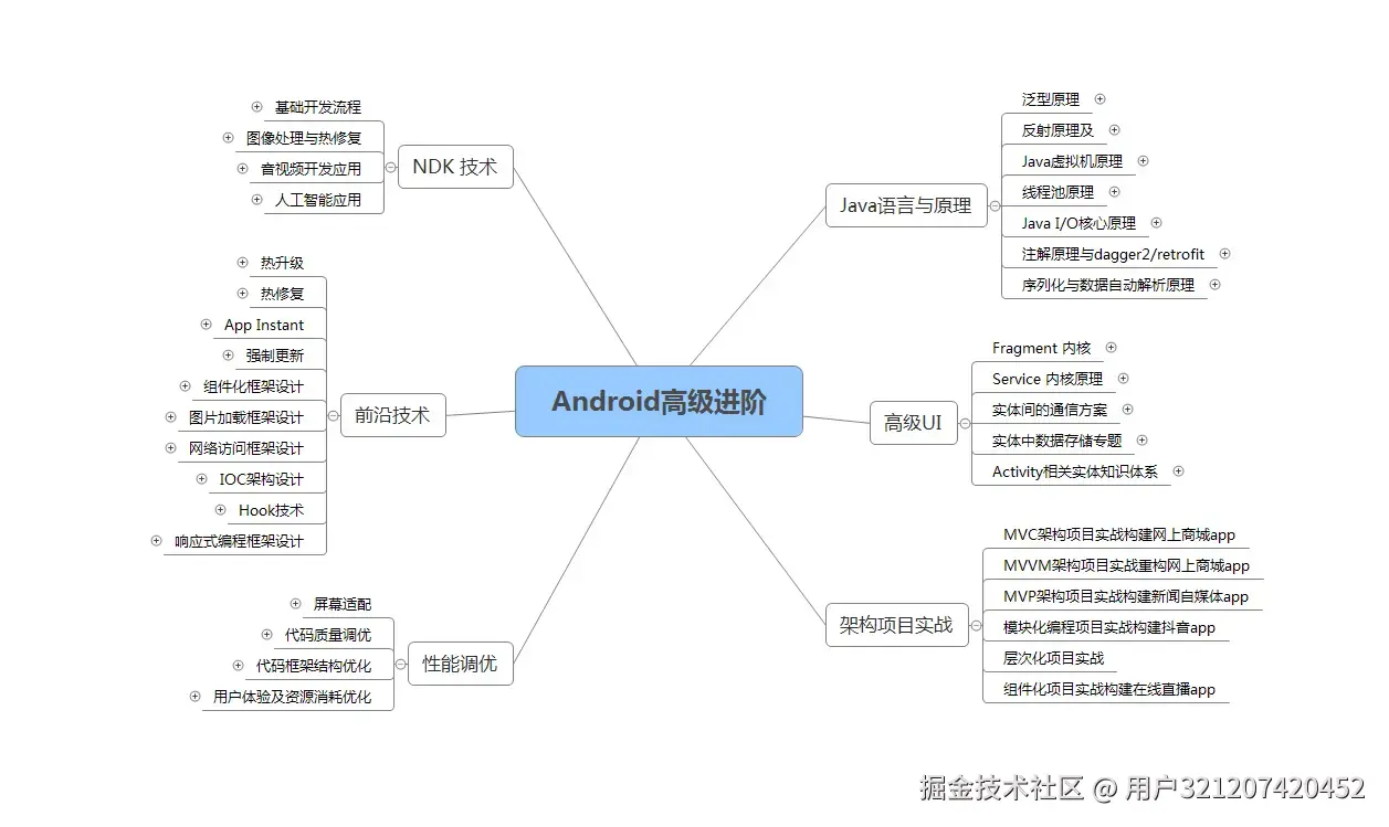我搜集整理过这几年阿里,以及腾讯,字节跳动,华为,小米等公司的面试题,把面试的要求和技术点梳理成一份大而全的“ Android架构师”面试 PDF(实际上比预期多花了不少精力),包含知识脉络 + 分支细节。