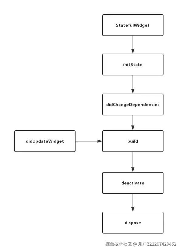 **dispose() ** Widget 销毁了,在调用这个方法之前,总会先调用 deactivate()。