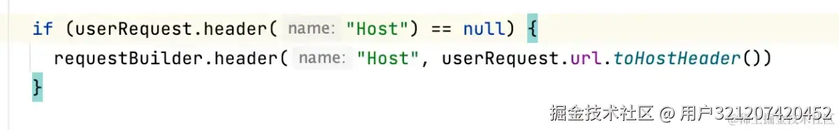 Http 请求发生重定向时,请求 header 中的 Host 字段需要更新为新的目标主机地址,否则服务端校验Host字段和实际请求的 host 不一致时会拒绝请求。首先看一下 Okhttp 是如何实现的这个功能: