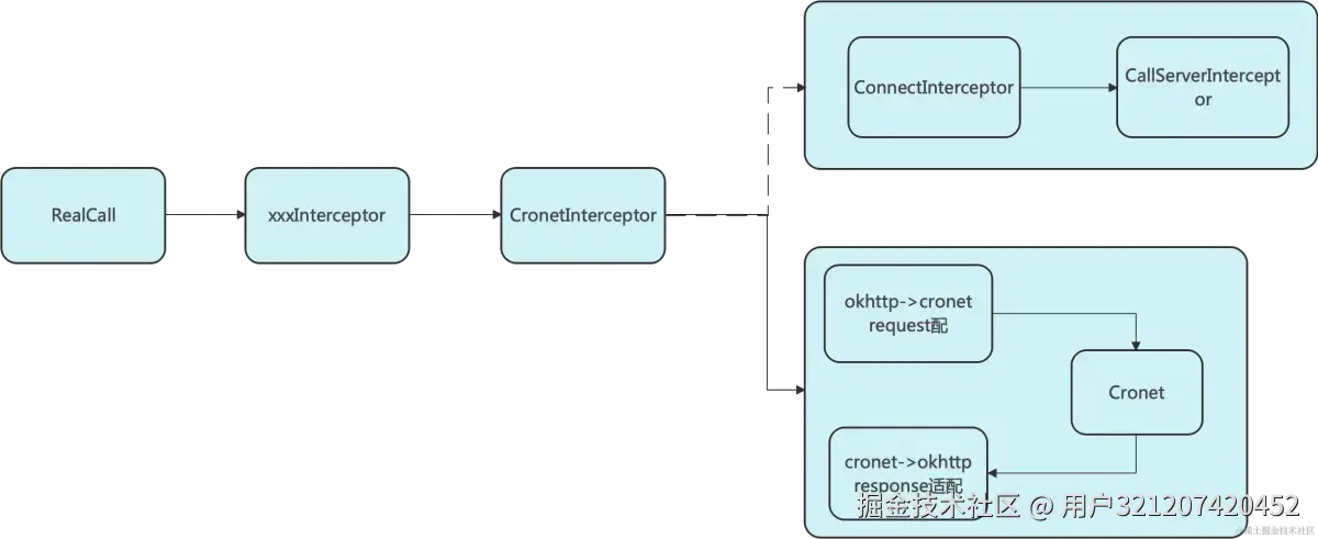 这两个 interceptor 主要负责的是核心的网络请求的全部后续细节,Cronet 有自己来接管自然无需适配。