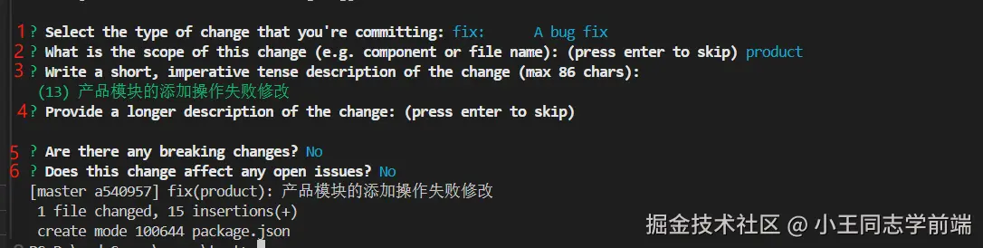 安装配置完成之后,查看效果,使用执行 git cz
