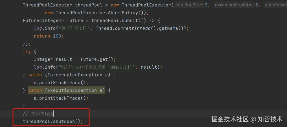多数情况下调⽤ shutdown 方法关闭线程池。