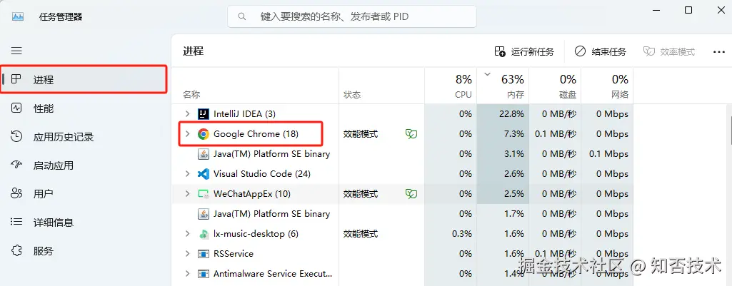 打开电脑的任务管理器,每一个正在运行的软件可以看做一个进程: