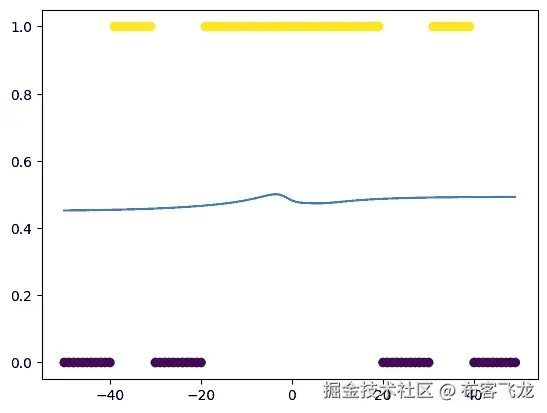 但随着训练的进行,准确性得到了改善。训练循环完成后,我们可以看到神经网络对数据的建模结果如下: