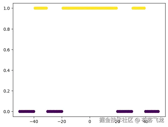 现在,让我们使用随机初始化的权重和偏差,通过lr_model对象对X进行预测。