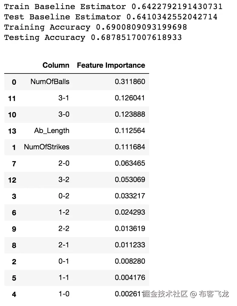 当将只关注 at 球棒的最终击球次数的模型与 at 球棒的不同击球次数进行比较时,预测结果几乎没有差异。这两个模型在预测击球手是否会上垒方面的正确率为 68.8%,这意味着无论你是以 0-2 开始,以 3-2 结束,还是以 3-0 开始。以 3 比 2 结束比赛,3 比 2 的比分才是最重要的。这有助于向打者表达,你的击球手在每次投球后都会更新,你总是可以让击球手在更好的情况下上垒。