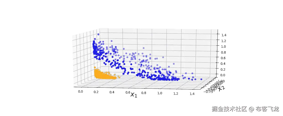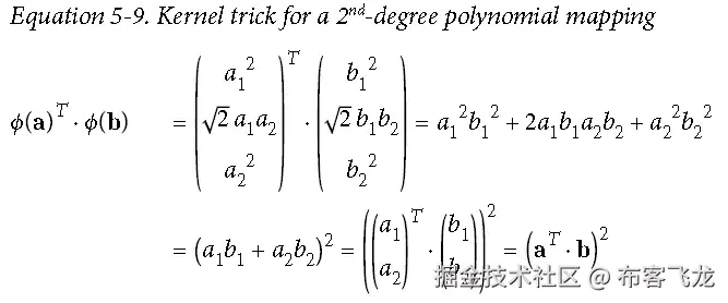 例如,下面举例说明了二次多项式的核心技巧,并且我们在前面的图中以三维方式可视化了这种转换。变换后的向量具有作为两个分量 x1 和 x2 的函数的坐标。所以点积也只包括分量 x1 和 x2。内核函数也将接受输入 x1、x2 并返回一个实数。点积也总是返回一个实数。