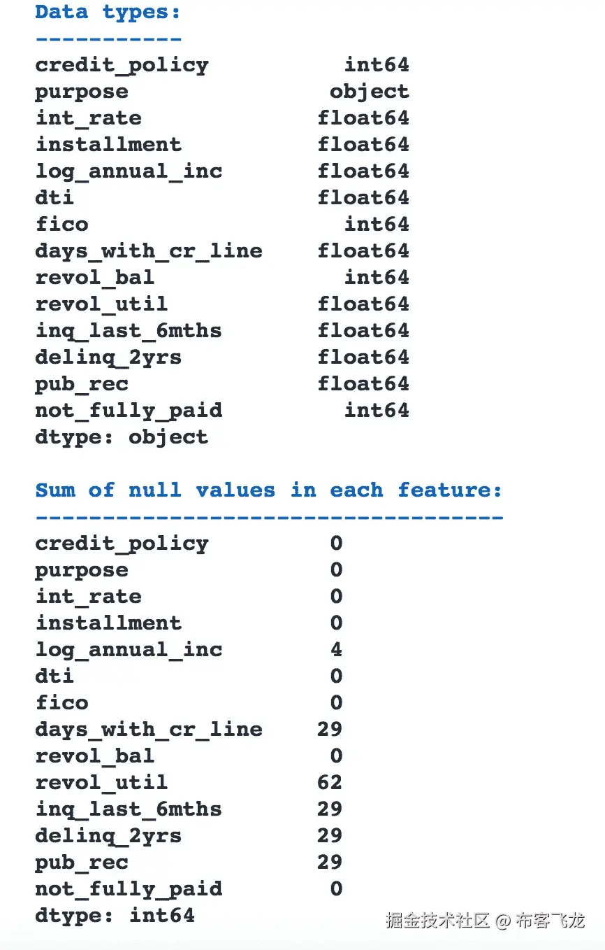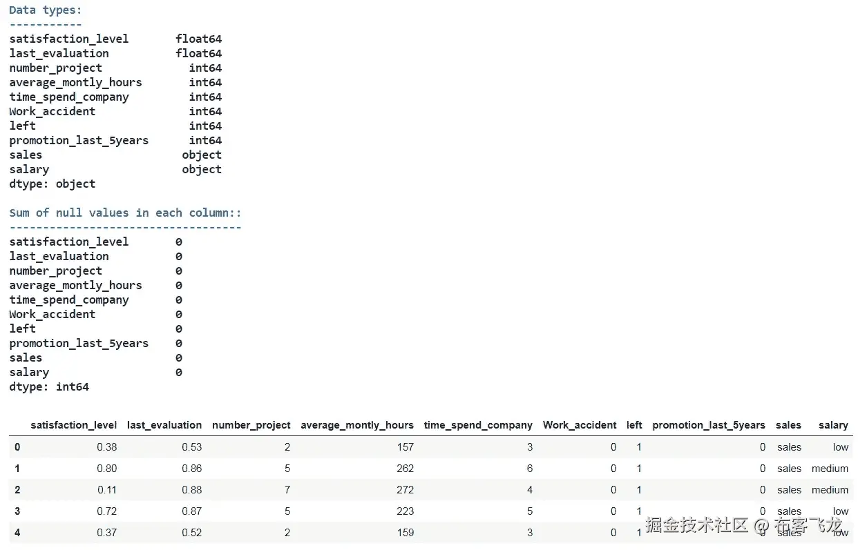 让我们看一下数据(检查是否有缺失值以及每个要素的数据类型):